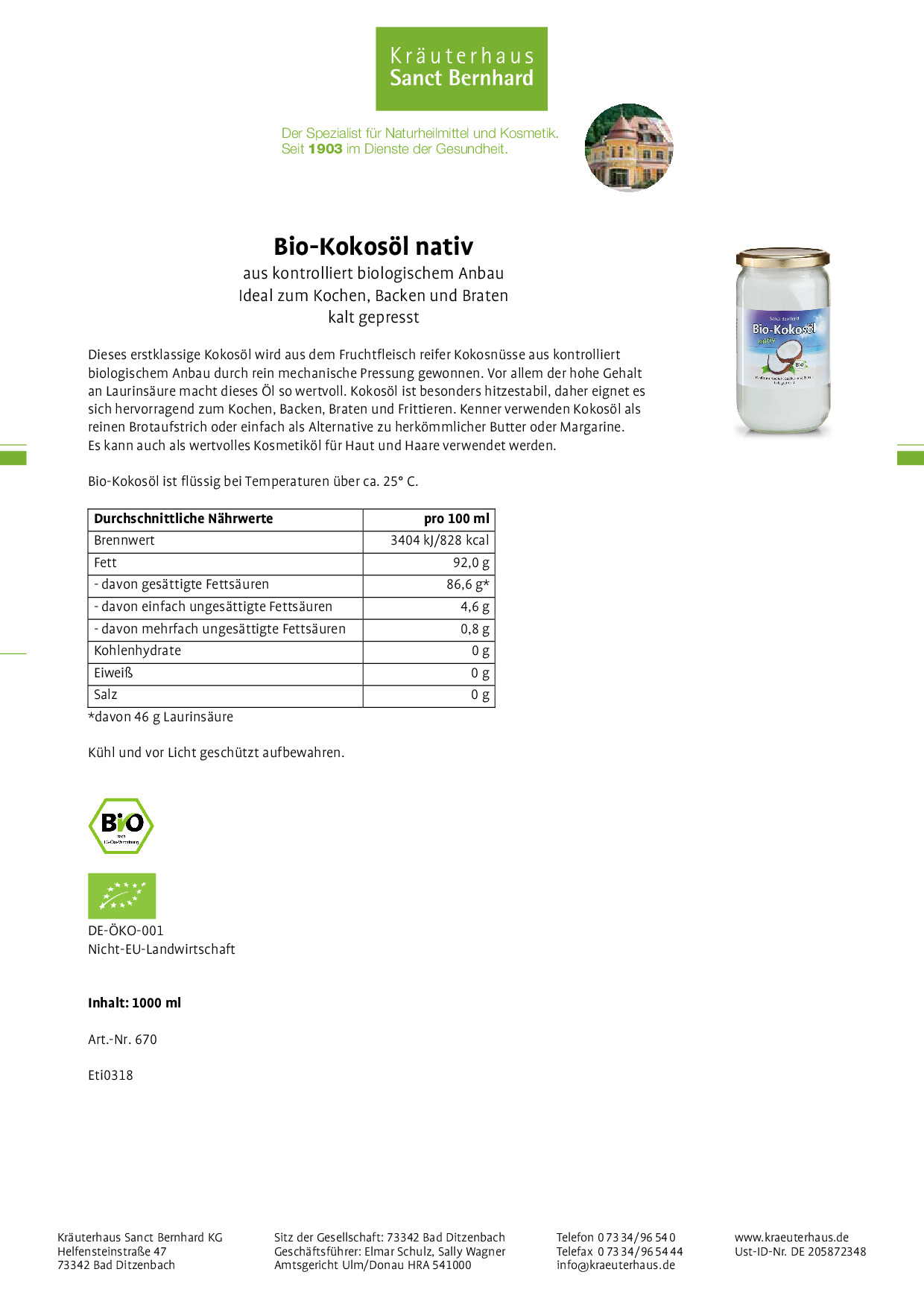 Dieses erstklassige Kokosöl wird aus dem Fruchtfleisch reifer Kokosnüsse aus kontrolliert biologischem Anbau durch rein mechanische Pressung gewonnen. Vor allem der hohe Gehalt an Laurinsäure macht dieses Öl so besonders wertvoll. Mit seinem feinen Kokosgeschmack ist es ein idealer Begleiter für orientalische und asiatische Gerichte, aber auch in der europäischen Küche wird es gerne verwendet.