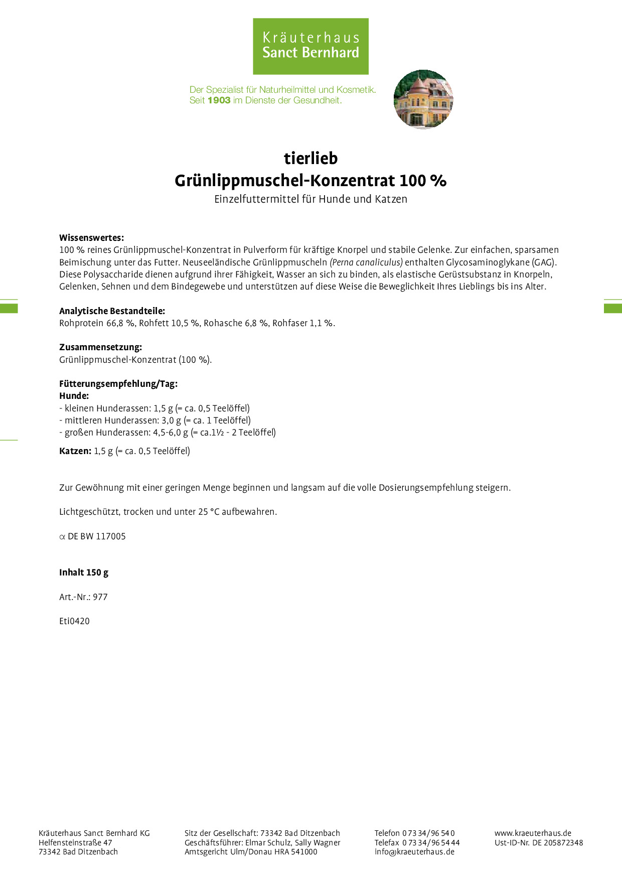 Zusammensetzung: Grünlippmuschel-Konzentrat (100 %).