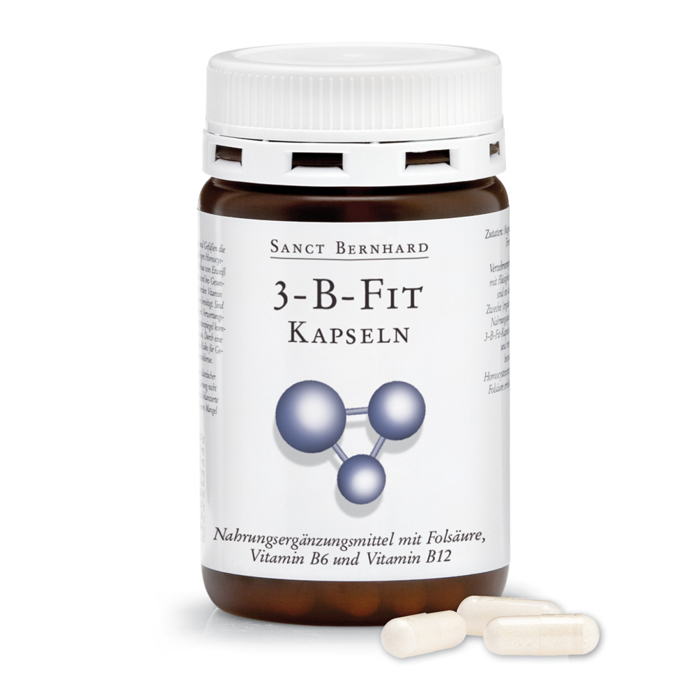 Every 3-B-Fit Capsule contains 10 mg vitamin B6, 400 µg folic acid and 500 µg vitamin B12.